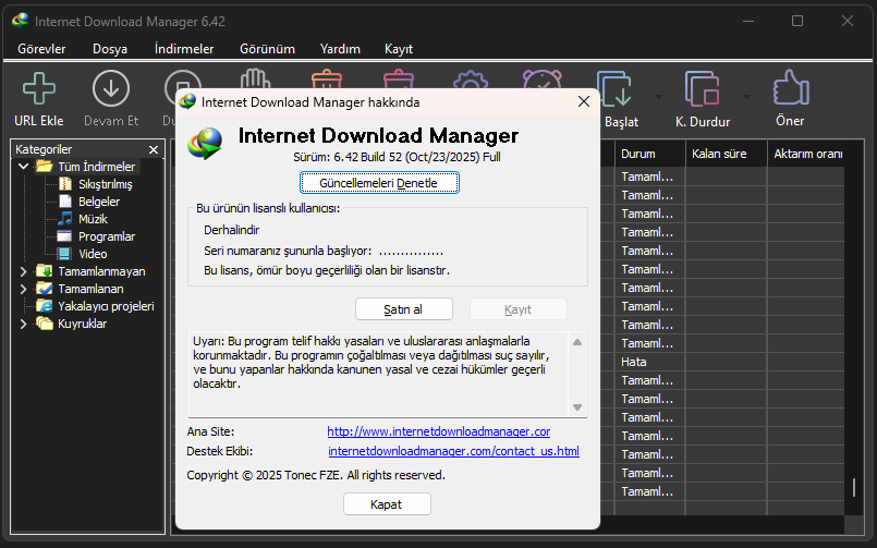 Internet Download Manager Full İndir – 6.42 Build 52 Türkçe